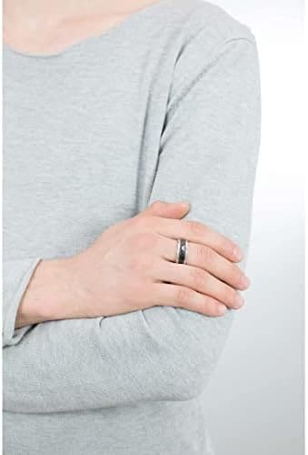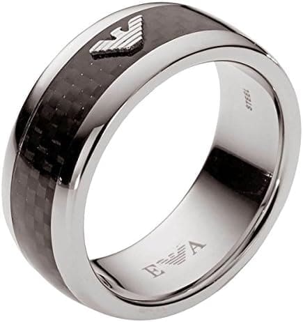 Este anillo de hombres de Emporio Armani presenta un patrón geométrico con logotipo en una banda pulida de acero inoxidable.