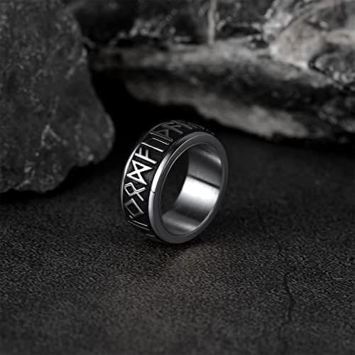 ? ? ? ANILLO VIKINGO NORDICO HOMBRE ? ? ? : Anillo de banda ancha con elemento nórdico runas alfabéticas, anillo giratorio para anti-estrés y jugar, una joyería espiritual atractiva, un buen talismán de protección, un complemento moderno para cualquier colección, esta pieza graciosa le hará lucir maravilloso y sentir completamente.