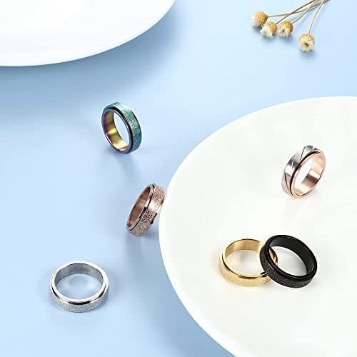 ?Regalo Perfecto?–estos anillos de acero inoxidable para mujer están disponibles en 6 estilos, muy versátiles y adecuados para todas las ocasiones. Elegante y divertido, gira suavemente y sin ruido. Perfecto para mamá, esposa, prometida, hermana, amiga como regalo de Navidad, regalo del día de la madre, regalo del día de San Valentín, regalo de cumpleaños y regalo de aniversario.