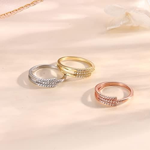 ?Diseño único?—El diseño de anillo ajustable es abierto, simbolizando que tu amor es interminable, simple y significativo. ¡¡ el anillo de compromiso también está salpicado de Zirconia cúbica, lo que significa que la vida futura brillará!