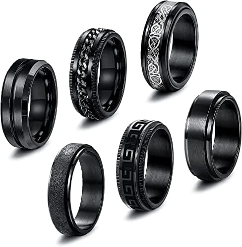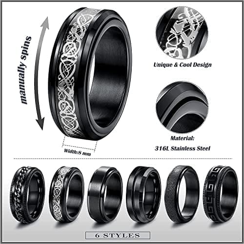 ? REGALO PARA HOMBRE FIDGET RING ? Los anillos de acero inoxidable para hombre están empaquetados en una exquisita bolsa de franela negra y se pueden enviar directamente como regalo. Regalo perfecto para él, esposo, padre, novio, familia, amigos y amantes para: cumpleaños, día de San Valentín, día del padre, Navidad, etc.