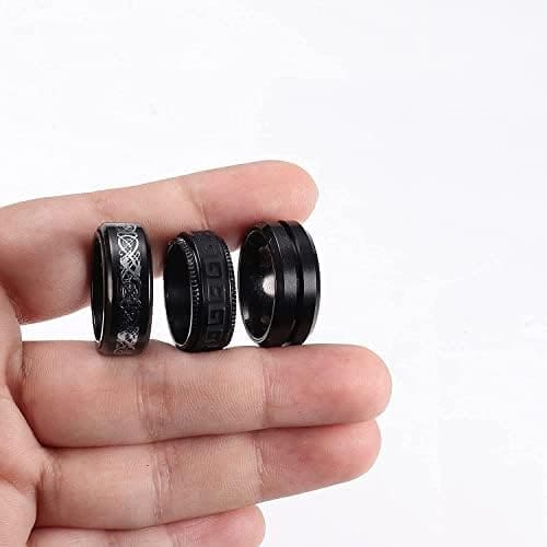 ? ANILLOS DE ACERO INOXIDABLE NEGROS ? Anillo de acero inoxidable de alta calidad, duradero y sólido, mayor tiempo de funcionamiento, mucho más seguro para el uso diario. Cara interior pulida de alta calidad, excelente artesanía galvanizada, sensación táctil cómoda, retención de color más prolongada.