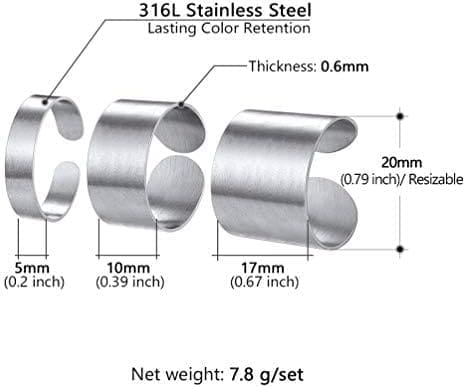 Tamaño de banda -5mm +10mm +17mm ancho, anillo ajustable para adaptarse a cualquier dedo