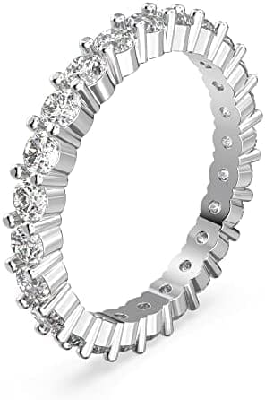 Elaborado por profesionales: este juego de anillos presenta cristales transparentes de cortes lustrosos engastados con plata rodiada alrededor de una elegante banda que se ajusta como anillo al dedo