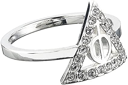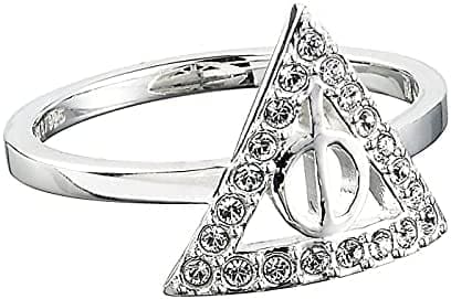 El anillo de Harry Potter con cristales de Swarovski marca el símbolo de Deathly Hallows, el abrigo de la invisibilidad, la piedra y la vara de los padres. Los seguidores de Harry Potter apreciarán la belleza y el significado de este anillo oficial de Deathly Hallows, que está disponible en tres tamaños y son un maravilloso regalo.
