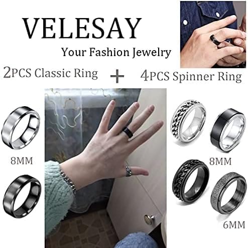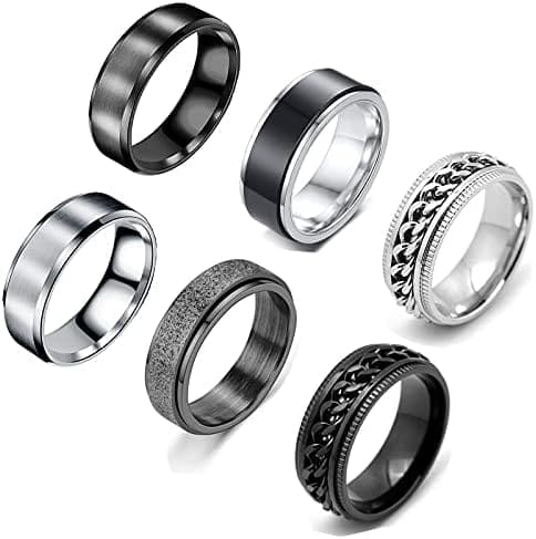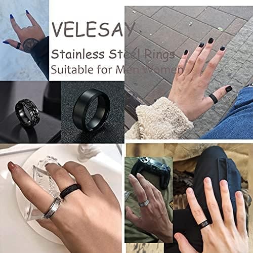 ?DISEÑO ÚNICO? Estilo simple y único, adecuado para mujeres y hombres de todas las edades, nunca pasa de moda. El diseño del anillos negros mujer tiene una función giratoria.