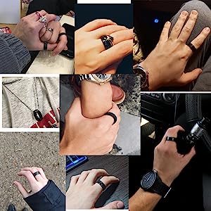 ?DISEÑO ÚNICO? Estilo simple y único, adecuado para mujeres y hombres de todas las edades, nunca pasa de moda. El diseño del anillos negros mujer tiene una función giratoria.